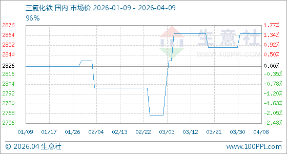 4月9日生意社三氯化铁基准价为2866.67元/吨