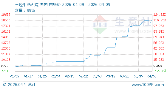 4月9日,生意社三羟甲基丙烷基准价为18700.00元/吨,与本月初(17466.67元/吨)相比,上涨了7.06%。
