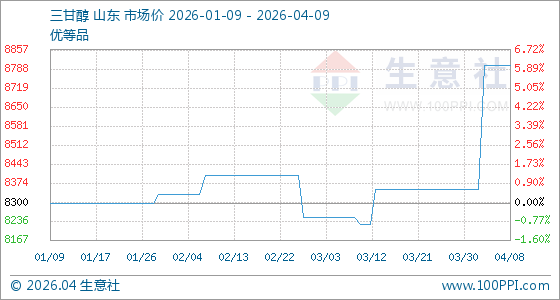 4月9日生意社三甘醇基准价为8800.00元/吨