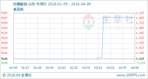 4月9日,生意社柠檬酸钠基准价为5270.00元/吨,与本月初持平。