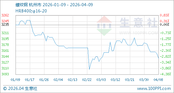 4月9日生意社螺纹钢基准价为3140.00元/吨