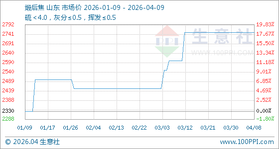 4月9日生意社煅后焦基准价为2750.00元/吨