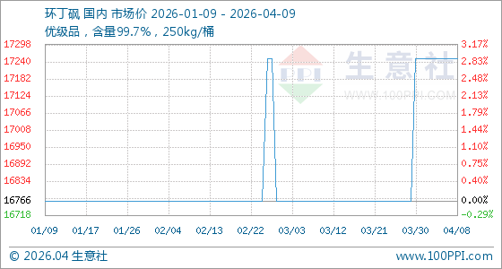 4月9日生意社环丁砜基准价为17250.00元/吨