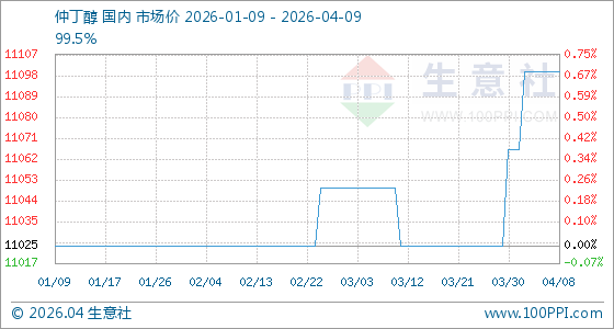 4月9日生意社仲丁醇基准价为11100.00元/吨