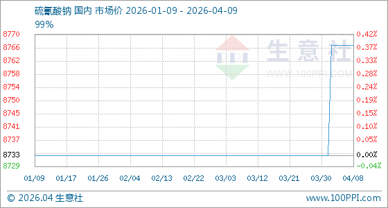 4月9日,生意社硫氰酸钠基准价为8766.67元/吨,与本月初(8733.33元/吨)相比,上涨了0.38%。