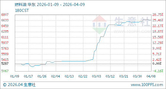 4月9日,生意社燃料油基准价为6650.00元/吨,与本月初(6587.50元/吨)相比,上涨了0.95%。