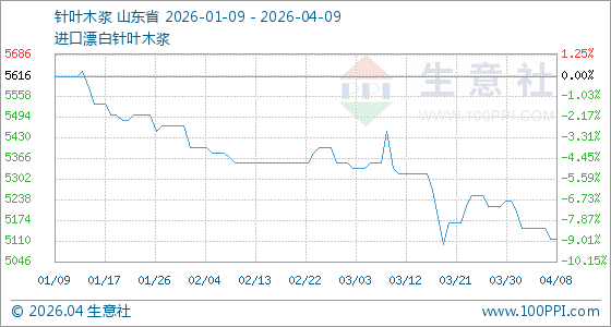 4月9日生意社针叶木浆基准价为5116.67元/吨