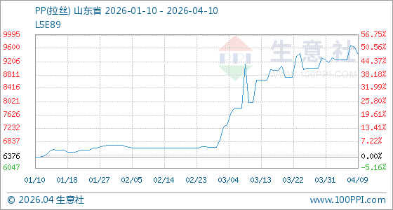 4月10日,生意社PP(拉丝)基准价为9416.67元/吨,与本月初(9250.00元/吨)相比,上涨了1.80%。