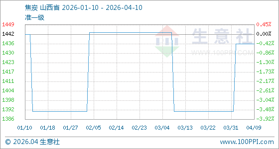 4月10日,生意社焦炭基准价为1436.25元/吨,与本月初(1391.25元/吨)相比,上涨了3.23%。