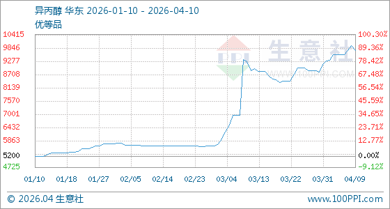 4月10日生意社异丙醇基准价为9741.67元/吨