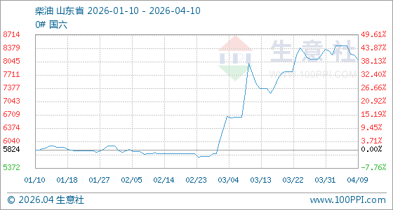 4月10日生意社柴油基准价为8097.29元/吨