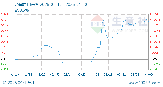 4月10日生意社异辛醇基准价为9366.67元/吨