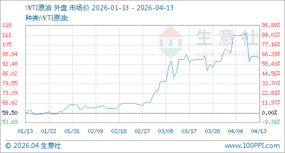 4月13日生意社WTI原油基准价为97.87美元/桶