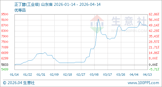 4月14日生意社正丁醇(工业级)基准价为8633.33元/吨