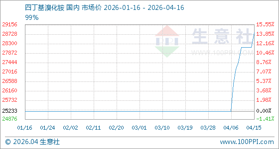 4月16日生意社四丁基溴化铵基准价为28800.00元/吨