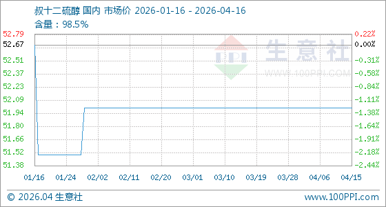 4月16日生意社叔十二硫醇基准价为52.00元/千克