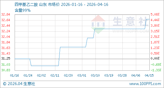 4月16日生意社四甲基乙二胺基准价为32.67元/千克