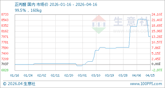 4月16日生意社正丙醛基准价为7987.50元/吨
