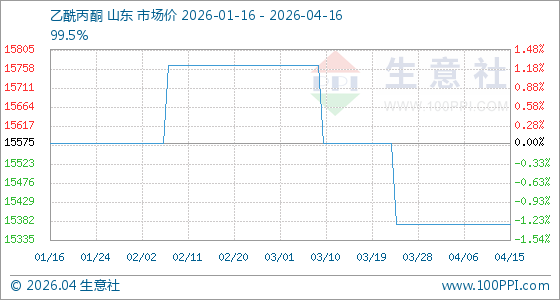 4月16日生意社乙酰丙酮基准价为15375.00元/吨
