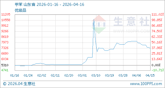 4月16日生意社甲苯基准价为7324.33元/吨