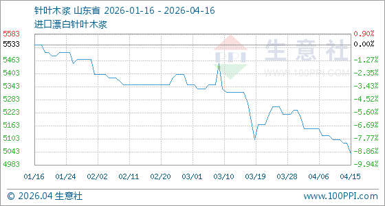 4月16日生意社针叶木浆基准价为5033.33元/吨