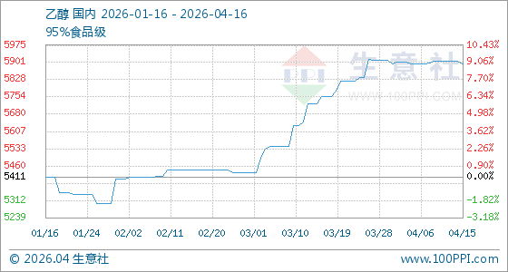4月16日,生意社乙醇基准价为5897.22元/吨,与本月初持平。