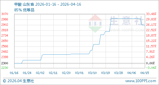 4月16日生意社甲酸基准价为2900.00元/吨