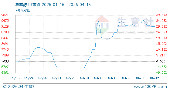 4月16日生意社异辛醇基准价为9133.33元/吨