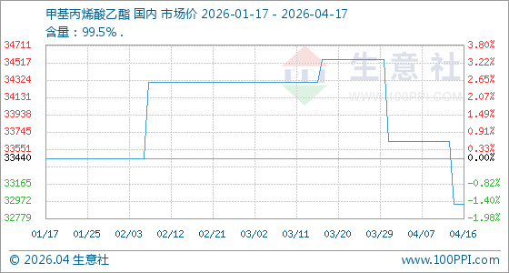 4月17日生意社甲基丙烯酸乙酯基准价为32940.00元/吨