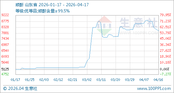 4月17日,生意社顺酐基准价为8050.00元/吨,与本月初(8150.00元/吨)相比,下降了1.23%。