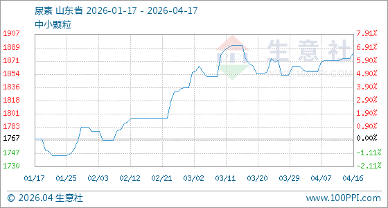 4月17日,生意社尿素基准价为1882.50元/吨,与本月初(1865.00元/吨)相比,上涨了0.94%。