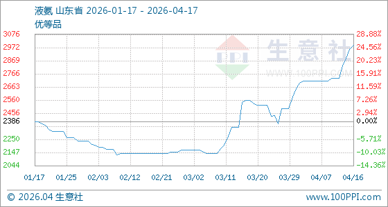 4月17日生意社液氨基准价为2990.00元/吨