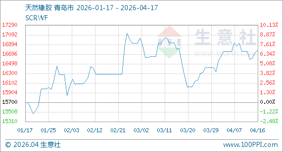 4月17日生意社天然橡胶基准价为16783.33元/吨