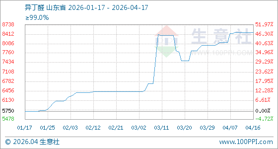 4月17日生意社异丁醛基准价为8466.67元/吨