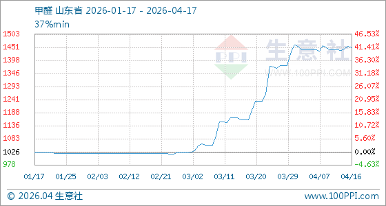 4月17日,生意社甲醛基准价为1451.25元/吨,与本月初(1460.00元/吨)相比,下降了0.6%。