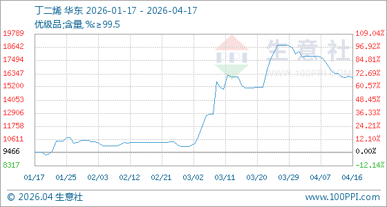 4月17日生意社丁二烯基准价为16033.33元/吨