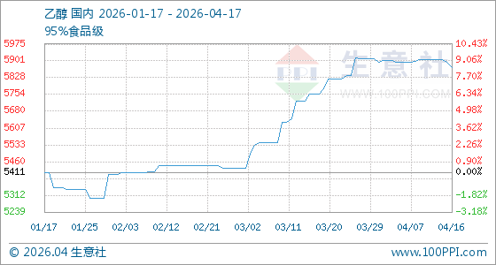 4月17日,生意社乙醇基准价为5872.22元/吨,与本月初(5897.22元/吨)相比,下降了0.42%。