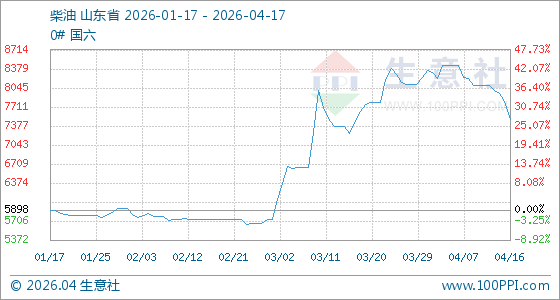 4月17日,生意社柴油基准价为7484.00元/吨,与本月初(8352.71元/吨)相比,下降了10.4%。