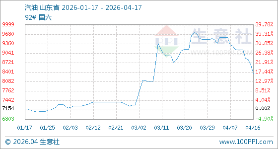 4月17日生意社汽油基准价为8343.14元/吨
