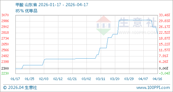 4月17日生意社甲酸基准价为2800.00元/吨