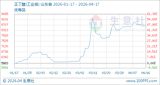 4月17日生意社正丁醇(工业级)基准价为8633.33元/吨