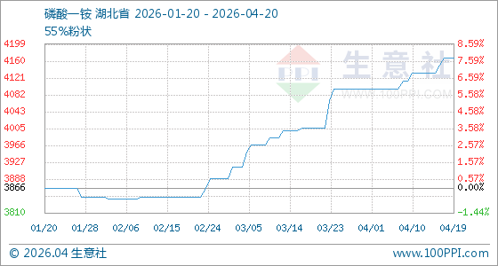 4月20日生意社磷酸一铵基准价为4166.67元/吨