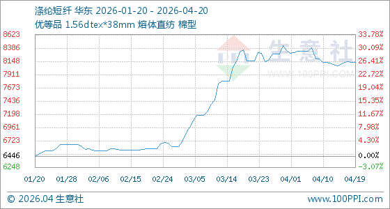 4月20日生意社涤纶短纤基准价为8128.42元/吨