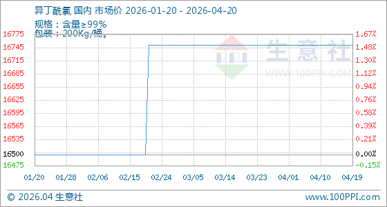 4月20日,生意社异丁酰氯基准价为16750.00元/吨,与本月初持平。