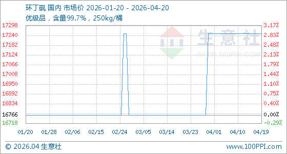 4月20日生意社环丁砜基准价为17250.00元/吨