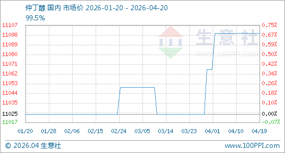 4月20日生意社仲丁醇基准价为11100.00元/吨