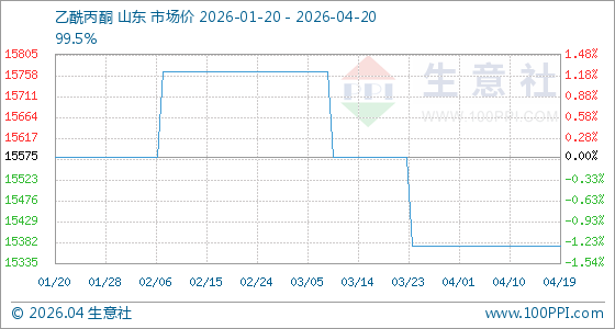 4月20日生意社乙酰丙酮基准价为15375.00元/吨