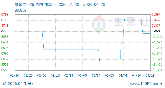 4月20日生意社碳酸二乙酯基准价为8700.00元/吨