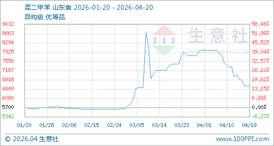 4月20日生意社混二甲苯基准价为6575.75元/吨