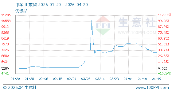 4月20日生意社甲苯基准价为7074.33元/吨